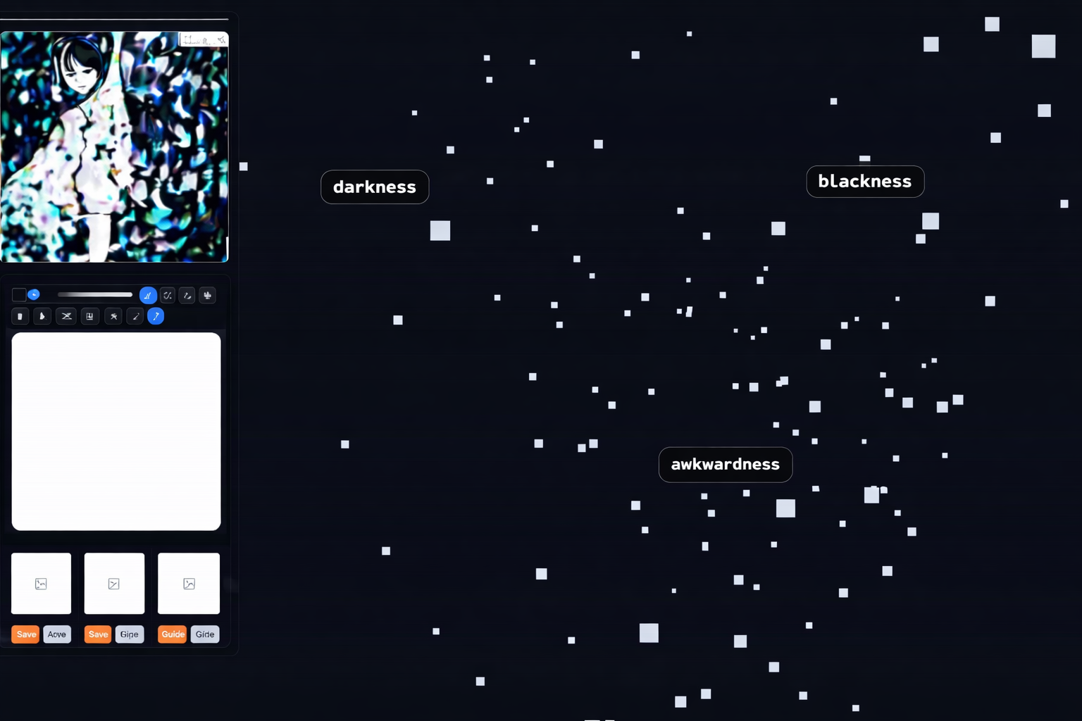 Thinking in Images explores how generative AI can function as a medium for reasoning rather than image production. The system allows users to navigate semantic space visually, enabling meaning to emerge gradually through interaction.