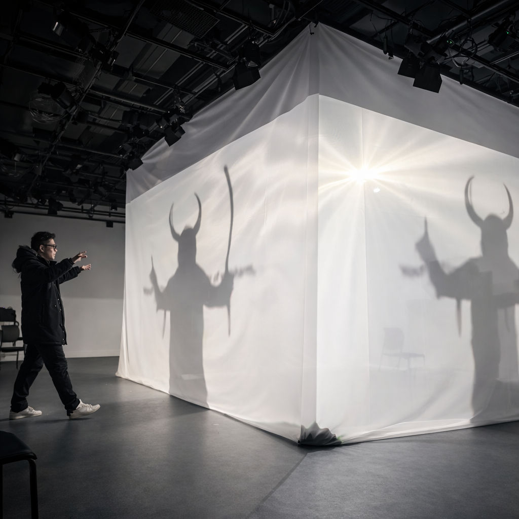 Unseen Realities is an interactive installation that reinterprets human presence through AI-generated shadows. Visitors’ silhouettes are captured and transformed in real time, producing alternative shadow forms that are projected onto a fabric screen. Instead of mirroring the body, the system generates a parallel visual identity—one that exists between recognition and abstraction.
